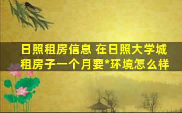 日照租房信息 在日照大学城租房子一个月要*环境怎么样